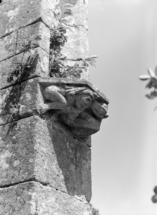 Façade sud, pignon du croisillon, détail du contrefort sud (angle sud-est), console de la niche.Immatriculation
