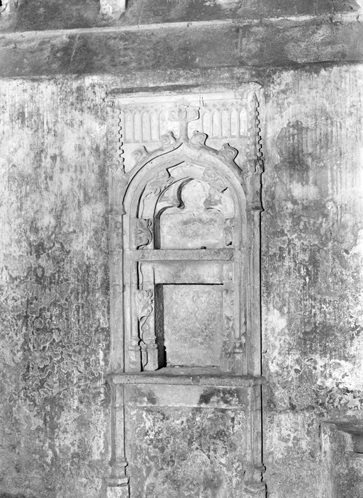 Nef, mur sud, crédence sous la baie entre porte et jubé.Immatriculation