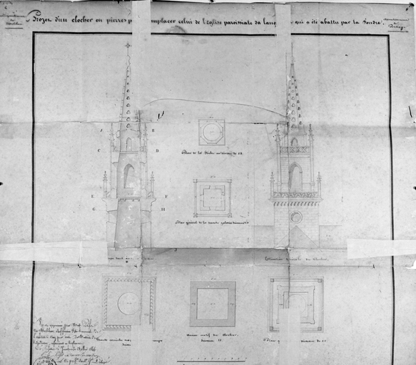 Reproduction projet clocher 1846 (élévations, plans et coupes)Immatriculation