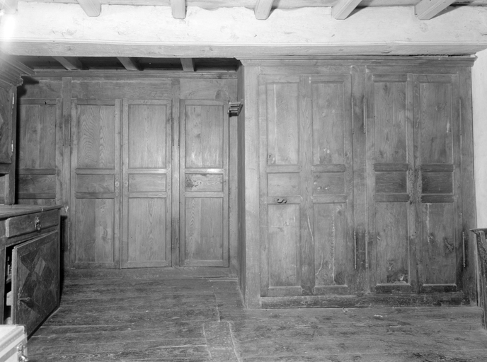 Placards et armoire contre le mur nord de la sacristie.Immatriculation