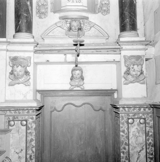 Maître-autel dans le choeur, encadrement et dessus de porte dans l'angle sud-est.Immatriculation