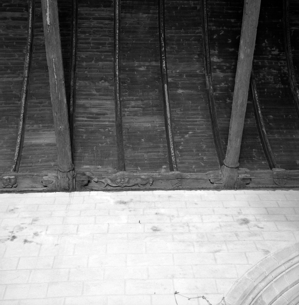 Sablières, détail du mur nord de la nef, entre entraits 3 et 4.Immatriculation