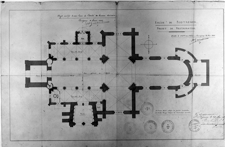 Projet de restauration : plan de l'église, 20 mai 1885, corrigé le 10 février 1886Immatriculation