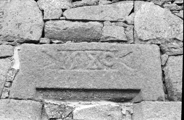 Logis, façade postérieure, millésime 1580 (cliché A. Cherrier, pré-inventaire, 1967)Immatriculation