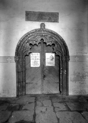 Plonévez-du-Faou, église paroissiale Saint-Pierre : porte du porche sud, état en 1967Immatriculation