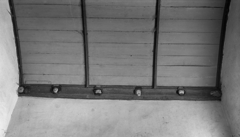 Plonévez-du-Faou, église paroissiale Saint-Pierre : sablière, porche sud, mur ouest, état en 1967Immatriculation