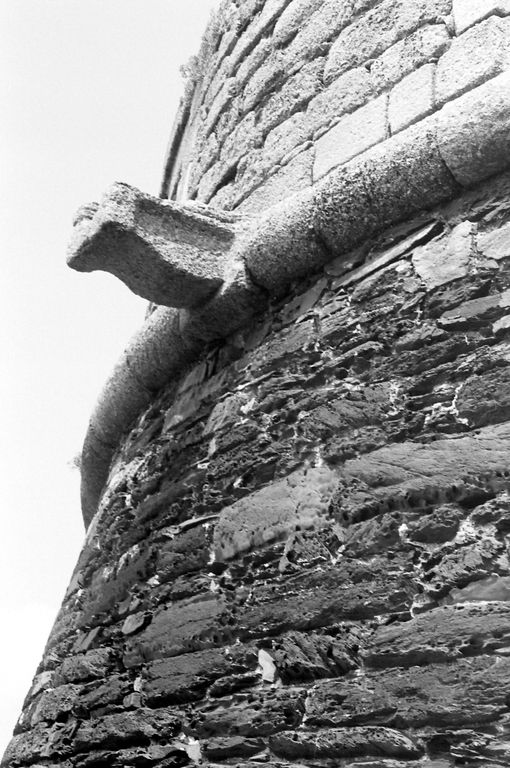 Vue de la batterie de Cornouaille en 1967 : extrémité ouest, escarpe, gargouille et cordon, chaînes harpées en pierres de taille de graniteImmatriculation