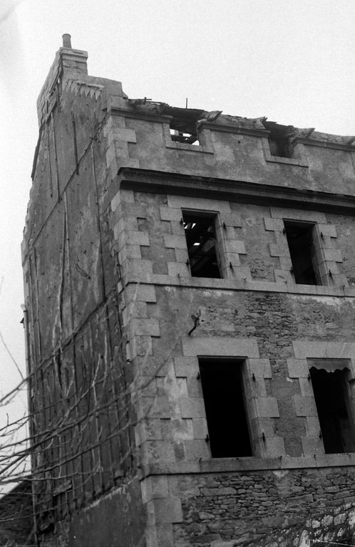 Vue de détail du grand bâtiment : élévation orientale, encadrements d'ouverture et corniche (état en 1967)Immatriculation