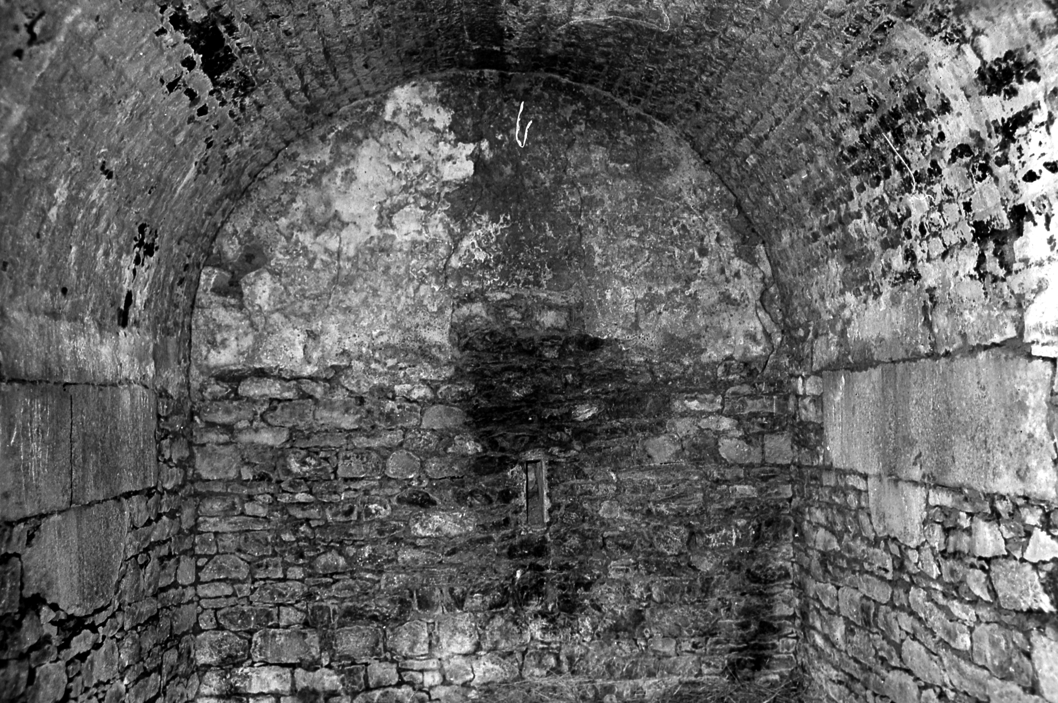 Vue du fort de la Fraternité en 1967 : intérieur du magasin à poudre voûté en berceau, évent d'aérationImmatriculation