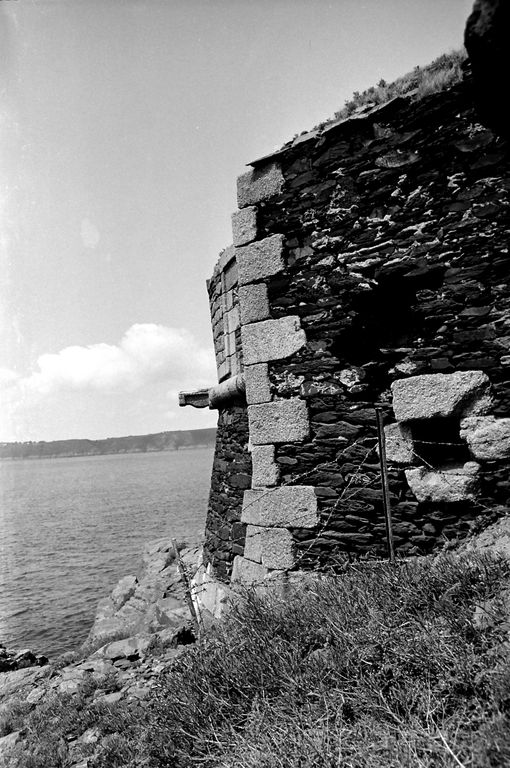 Vue de la batterie de Cornouaille en 1967 : extrémité ouest, escarpe, chaînes harpées en pierres de taille de graniteImmatriculation