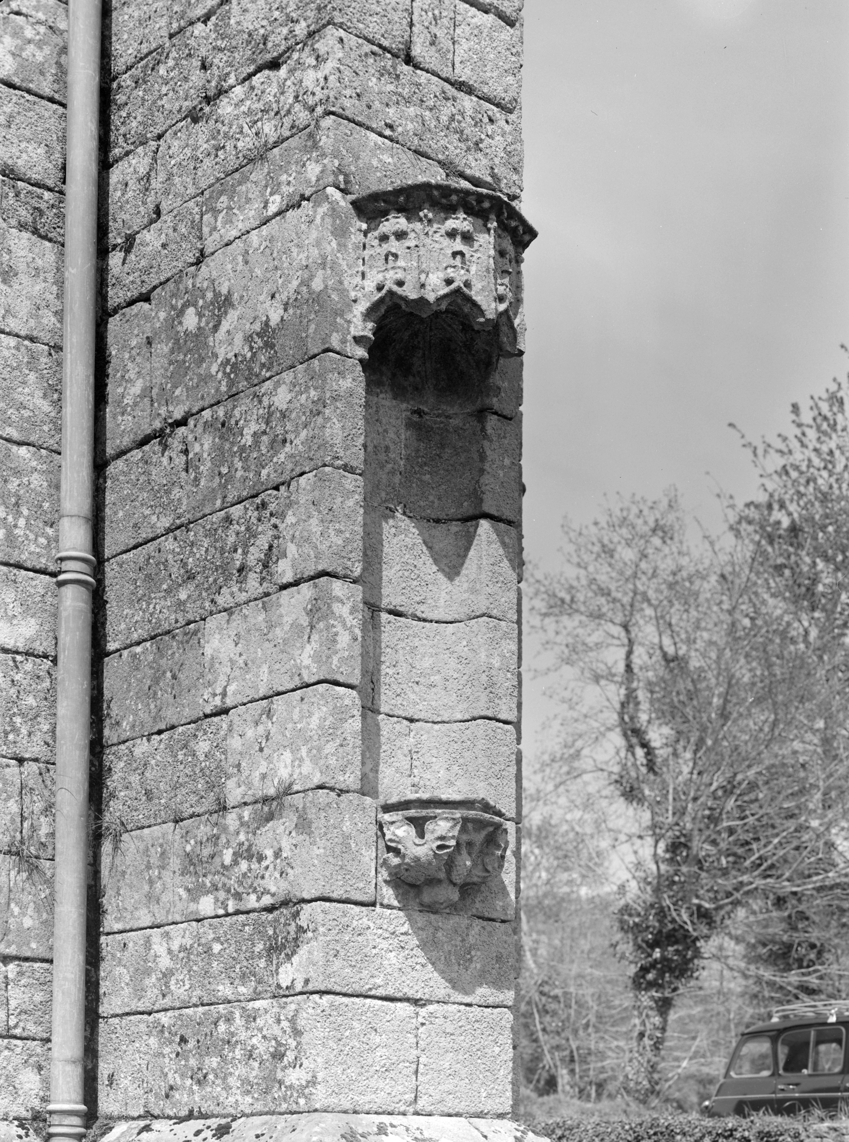 Niche du contrefort de l'angle sud-est du choeur (perpendiculaire au mur sud).Immatriculation