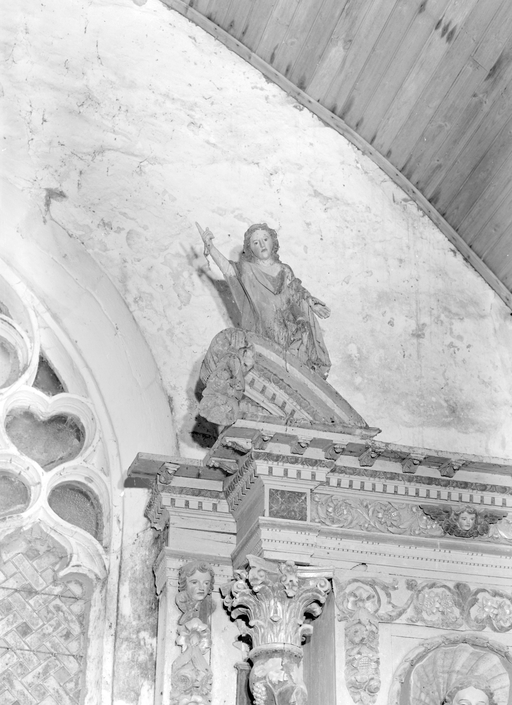Statue d'homme, (ange orant), au-dessus du retable, travée sud, état en 1967Immatriculation
