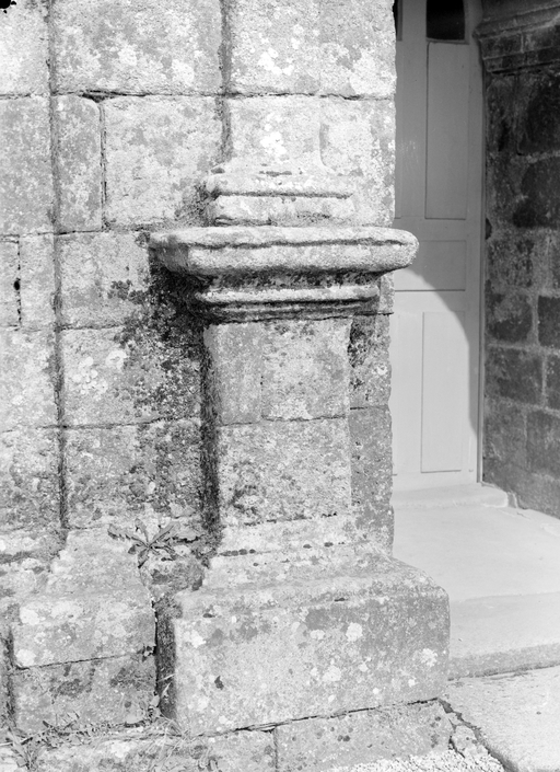 Vue de détail de la base d'un pilastre du portail ouestImmatriculation