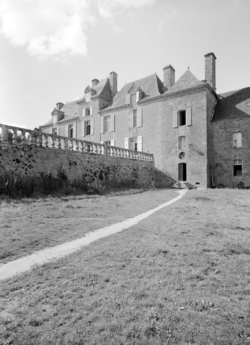 Vue générale de la façade principale prise du sud-est avec escalier et balustrade, état en 1967Immatriculation