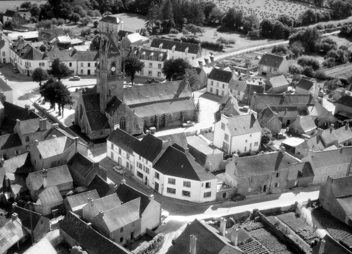 Vue aérienne de l'agglomération au centre : l'église, pignon ouest de la façade nordImmatriculation