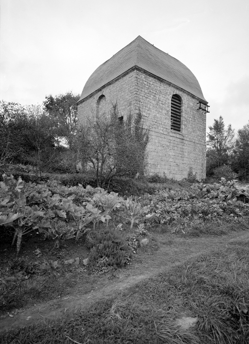 Vue du clocher isolé dans la montagne des Cloches, au nord de l'égliseImmatriculation