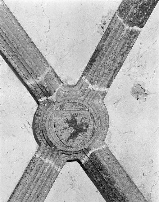 Ecu, croisée de la troisième travée du bas-côté nord du choeur.Immatriculation