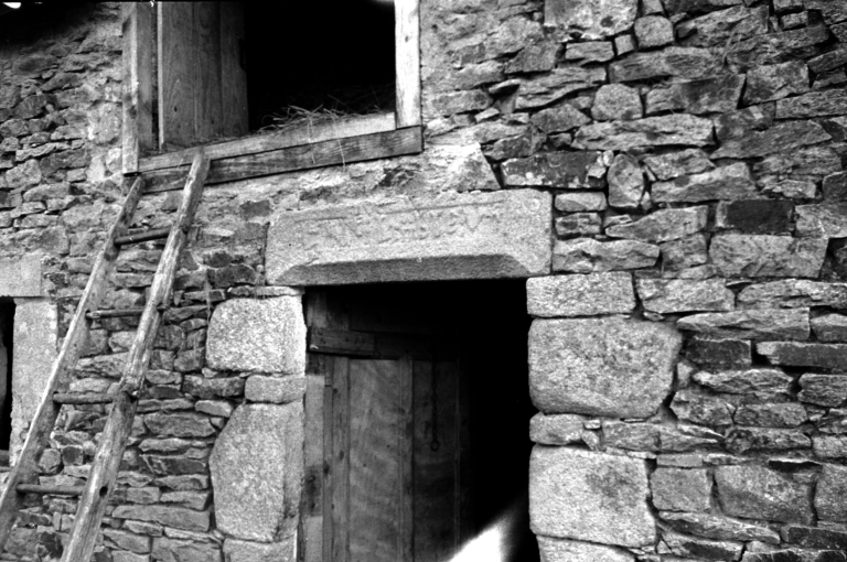 Manegueguan, maison, façade antérieure : porte, détail du linteauImmatriculation