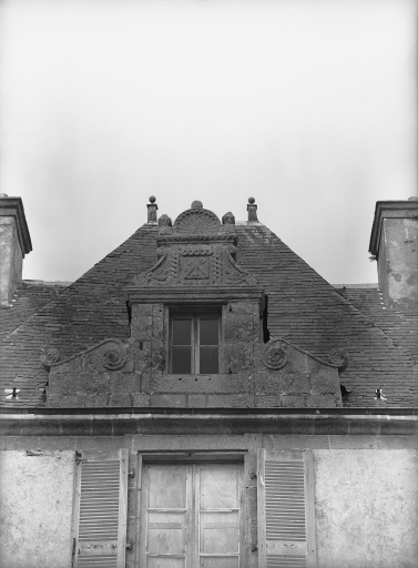 Façade sud : détail du fronton centralImmatriculation