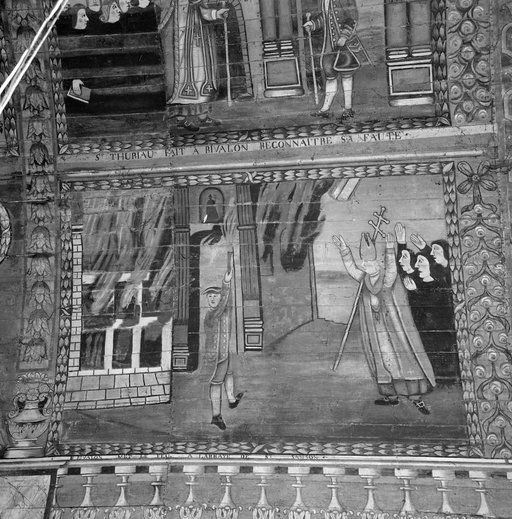 Lambris peint de la voûte, choeur au nord : panneau 11, Rivalon incendie l'abbayeImmatriculation