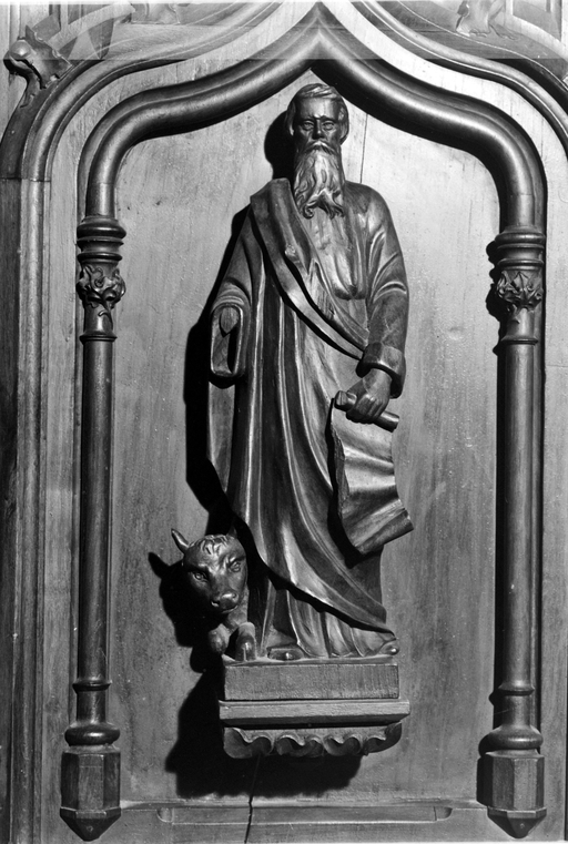 Chaire, détail : statuette de saint LucImmatriculation