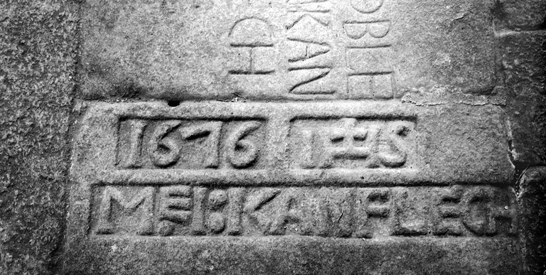 Pierre tombale au niveau des portes de la nefImmatriculation