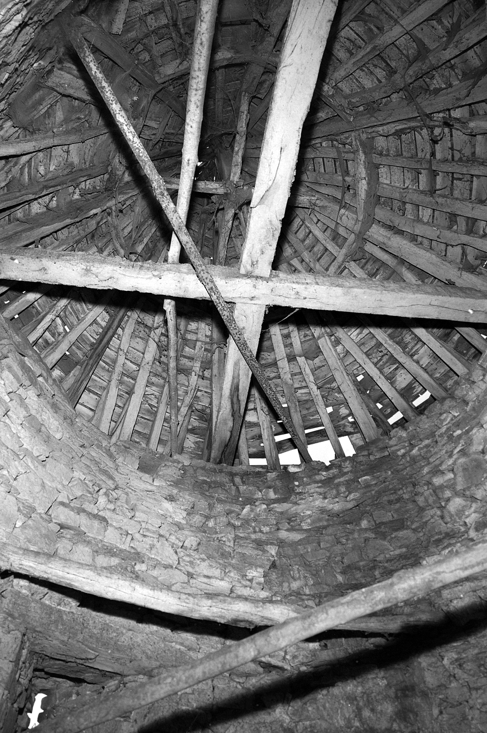 Vue générale de la charpente du bâtiment d'entrée, tourelle (Etat en 1968)Immatriculation