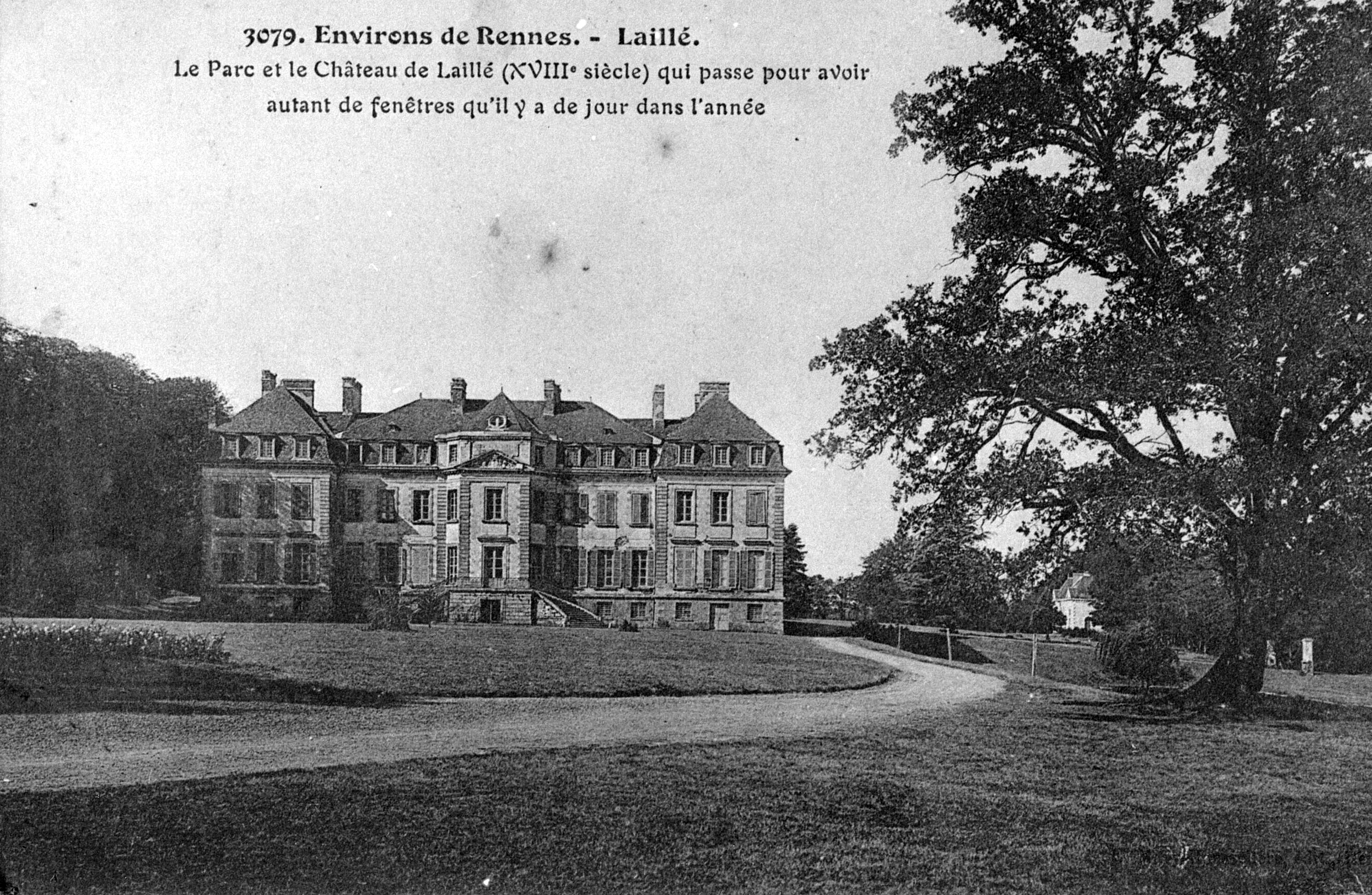 3079. Environs de Rennes - Laillé, la parc et le château. Carte postale ancienne.Immatriculation