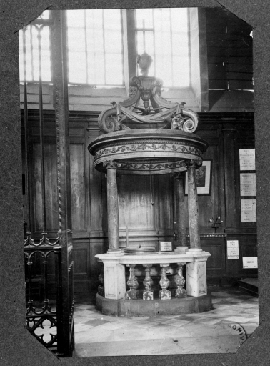Fonds baptismaux, repro. Carte postale.Immatriculation