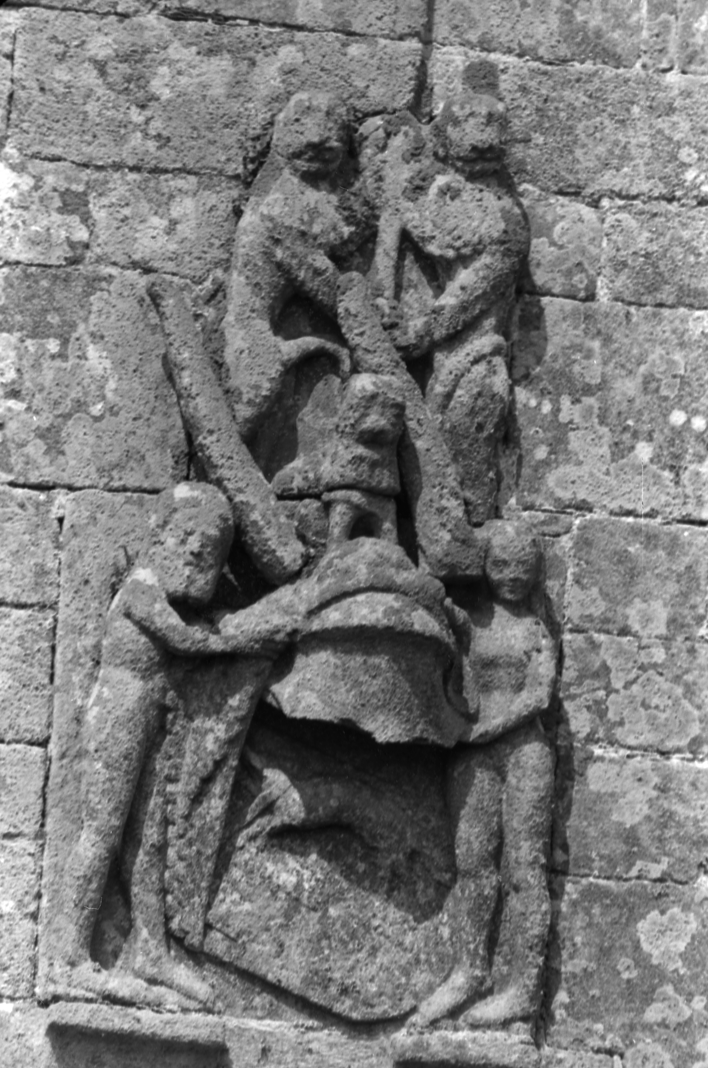 Chevet. Armes ducales : tenants en forme de sauvages, cimier aux cornes de boeuf et au lion. Lions portant la bannière ducale.Immatriculation