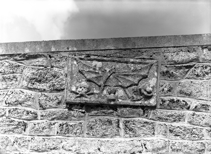 Mur de clôture est du cimetière : détail de pierre sculptéeImmatriculation