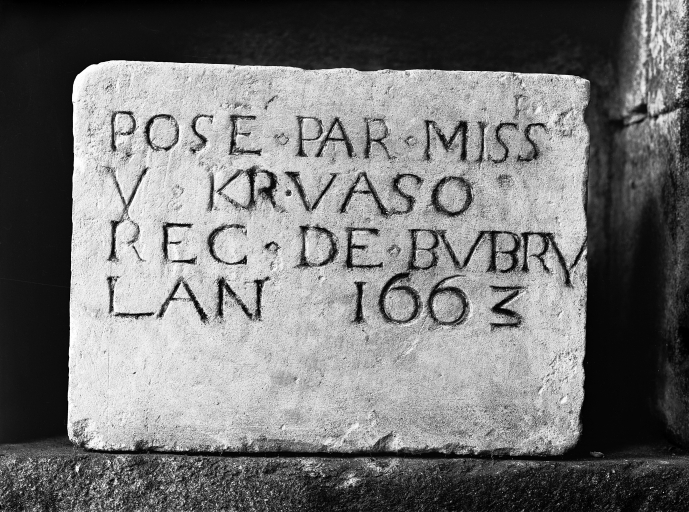 Crédence du choeur : détail de l'inscriptionImmatriculation