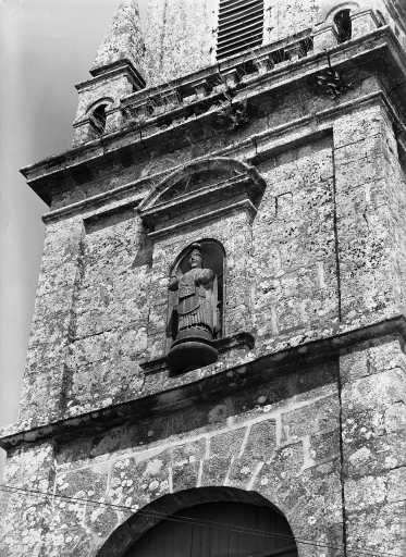 Statue de Saint-Mathurin dans la niche de la façade ouest de la tour : vue de trois-quarts gaucheImmatriculation