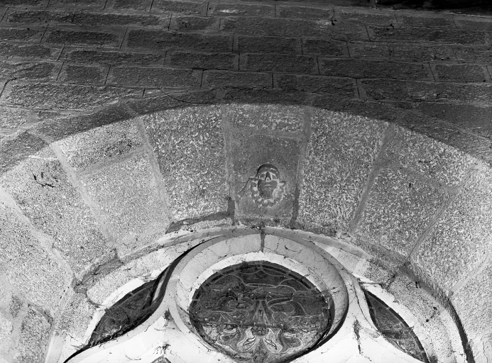 Détail de la pierre sculptée de la fenêtre du mur nord de la nefImmatriculation