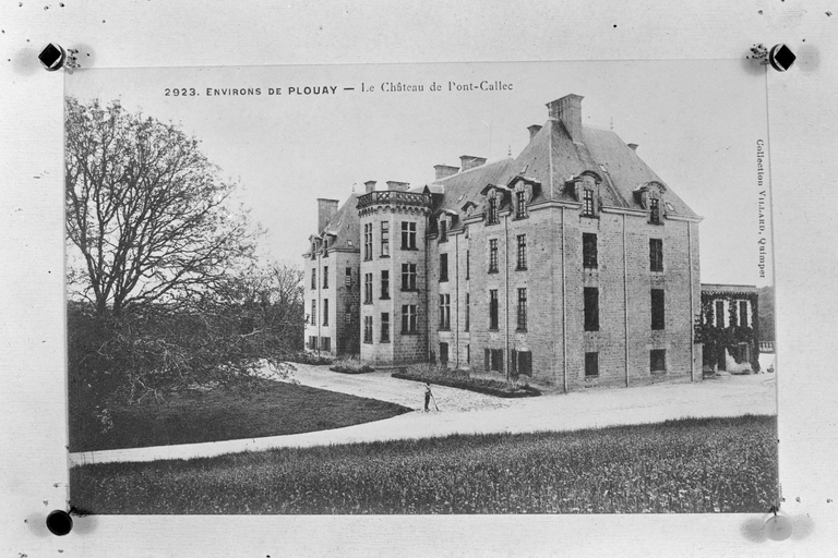 Environs de Plouay Le château de Pont-Callec. Carte postale ancienne, collection Villard, Quimper (Archives départementales du Morbihan, 14-2)Immatriculation
