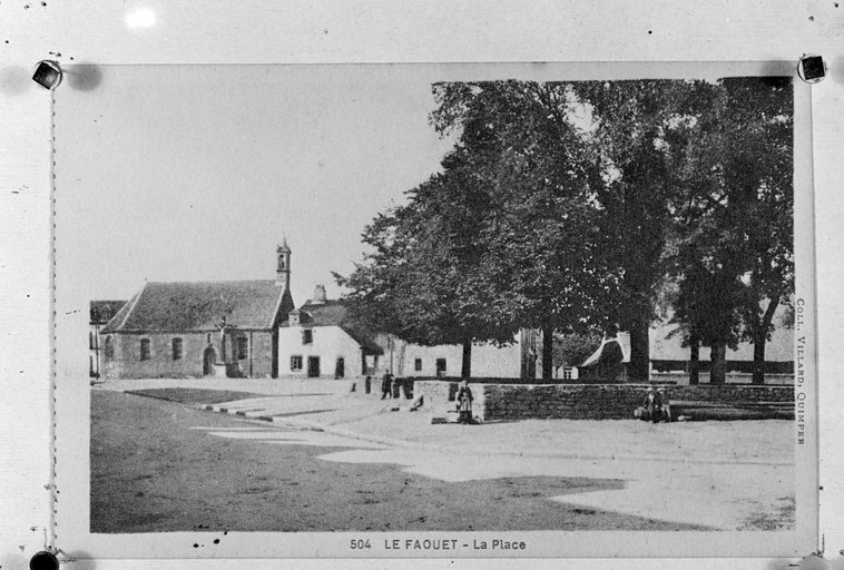Carte postale ancienne - Vue générale de la chapelle et de la place, prise du sud-ouest de la place (Archives départementales du Morbihan, 53-2).Immatriculation