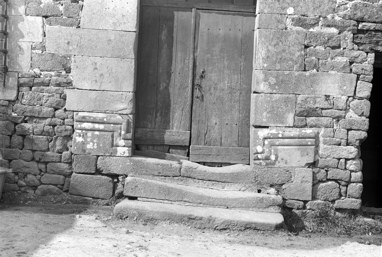 Façade sud : détail porte centrale, le seuilImmatriculation