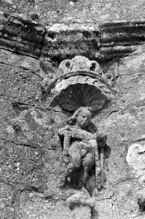 Clocher, face ouest, colonne nord de la porte : détail de la figure sculptéeImmatriculation