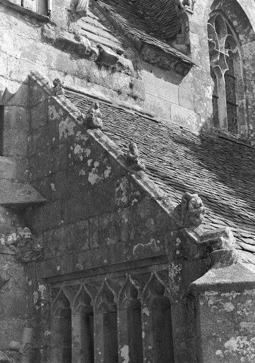 Façade sud, ossuaire : détail des figures sculptées du pignon ouestImmatriculation