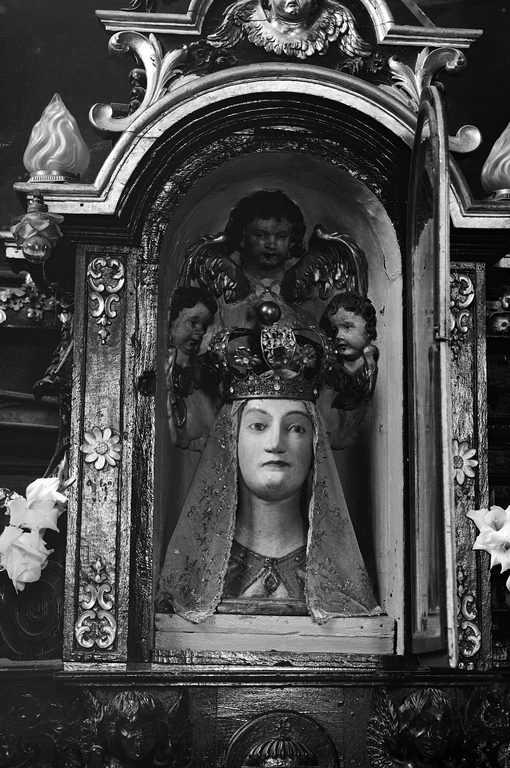 Croisillon nord, mur est, retable : détail du tabernacle, buste de la viergeImmatriculation