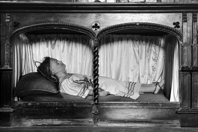 Croisillon nord, mur est, retable : détail de l'antependium, statue reliquaire de saint ValentinImmatriculation