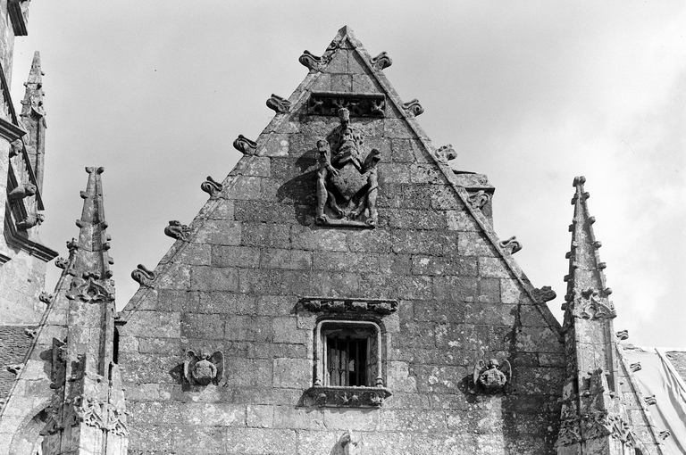 Façade sud, porche : détail du frontonImmatriculation