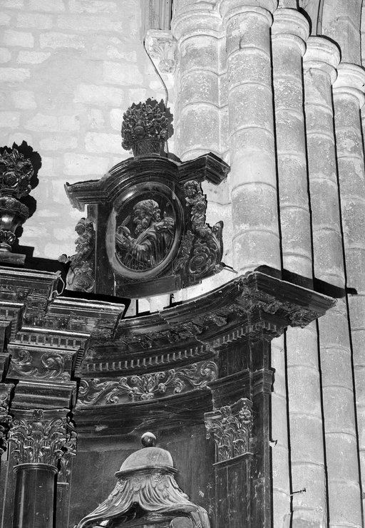 Croisillon nord, mur est, retable : fronton, détail du médaillon sud, saint LucImmatriculation