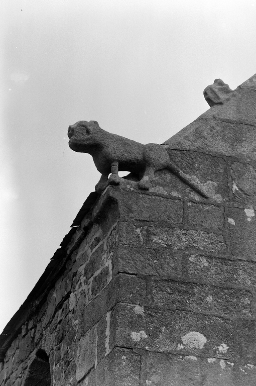 Façade ouest : détail de la pierre d'assise sculptée du rampant nordImmatriculation