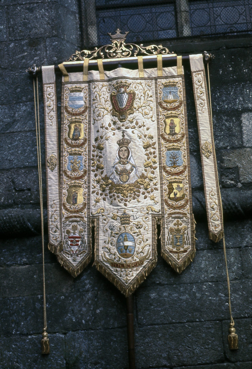 Bannière de procession : de Notre-Dame de Rostrenen, église paroissiale Notre-Dame du Roncier (Rostrenen),