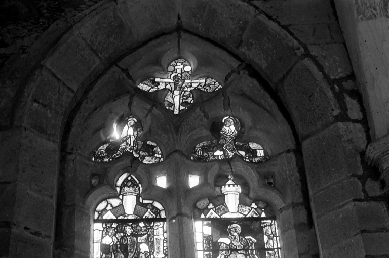 Verrière à personnages : Vie de la Vierge, Calvaire (baie 1),