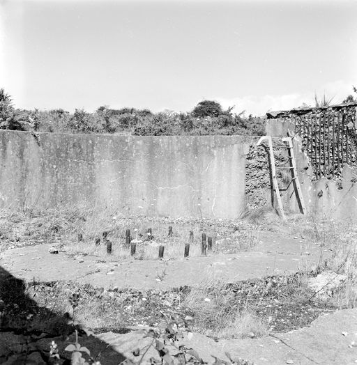 Vue de la batterie de mortiers de 30 cm des Capucins en 1969 : plate-forme pour une pièce. A signaler : l'entretien remarquable du siteImmatriculation