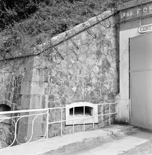Vue du fort de Crozon en 1969 : détail d'une embrasure flanquant l'entréeImmatriculation