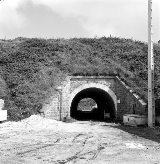 Vue du fort de Crozon en 1969 : flanc sud, passage couvert du magasin à poudre terrasséImmatriculation