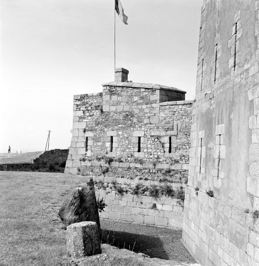 Vue de la tour Vauban en 1969 : front de gorge, fossé (marée basse) escarpe et four à boulets (période révolutionnaire)Immatriculation
